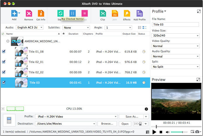 Specially created for Mac users and Home DVD movie lovers, Xilisoft DVD Converter for Mac can convert Home DVD in lightning speed, convert Home DVD movie to popular video formats, and convert Home DVD audio to MP3 and more audio formats.